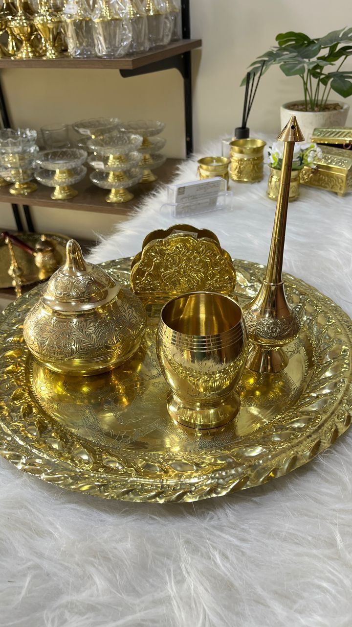 أكملي فخامة مائدتك بطقم متكامل من النحاس الذهبي الثقيل، يجمع بين الأناقة والوظيفة في آن واحد.